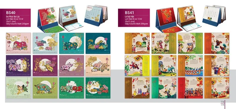 Lịch chữ A Kích thước: Khổ cố định (Đế cao 19 x ngang 20.5cm / Cao 16 x 24cm / Cao 19 x 24cm) Công nghệ: In kỹ thuật số Chất liệu: Giấy lịch C250 (Không cán) in kích thước file khách Thông