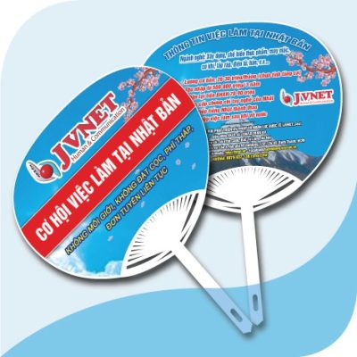 Quy cách: Công nghệ in: In Offset Kích thước quạt: 32,5cmx24cm ( Cán 12,5cm ) Gia công: Bế, dán thành phẩm Kích thước tờ Decal: 18cm x 24cm BẢNG BÁO GIÁ QUẠT NAN NHỰA Số lượng Đơn giá/ chiếc 50
