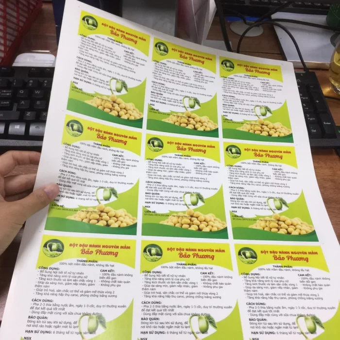 Thông tin trên tem Decal bao gồm tên mặt hàng, tên cơ sở sản xuất, công dụng, chức năng, hạn sử dụng…Việc in tem nhãn sản phẩm đảm bảo cho khách hàng thông tin đầy đủ và tạo sự tin cậy cho khách hàng khi mua thực phẩm. Nguồn thực phẩm không có bao bì nhãn mác chắc chắn rằng không khách hàng nào dám sử dụng cả.